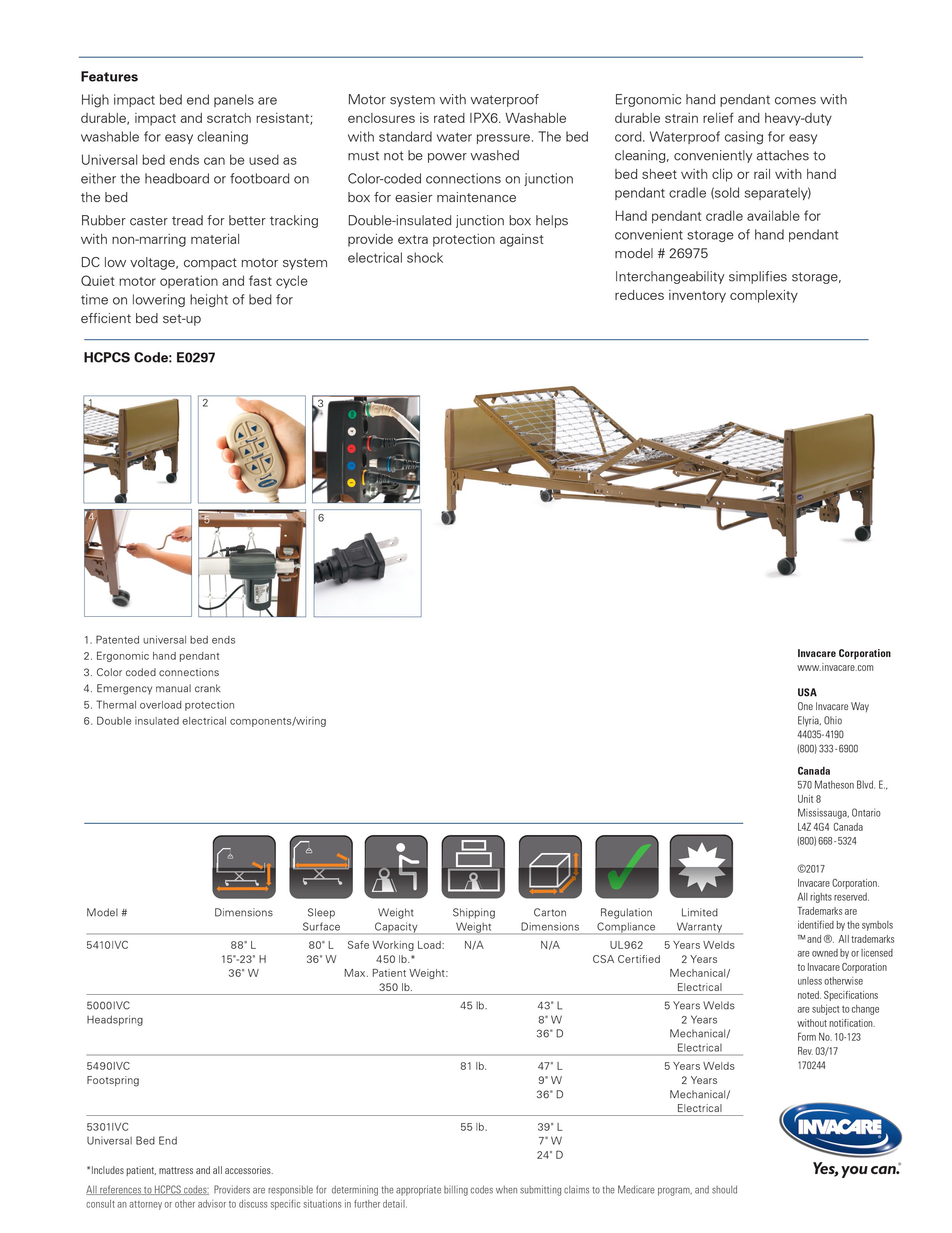 This Invacare Full-Electric Bed offers the greatest convenience. Invacare introduced the next generation home care bed with a number of innovations. The easy-to-use hand control provides motorized positioning of the upper body and knees, and also adjusts bed frame height for efficient use of accessories and for safe and easy transfer. These new features are designed for home use. This is a great bed for home or assisted living facilities. The Invacare Full Electric Bed is ideal for those who are looking for adjustable head, foot and height at a reasonable price. Multiple mattress options to ensure the comfort and skin protection of your loved one.
