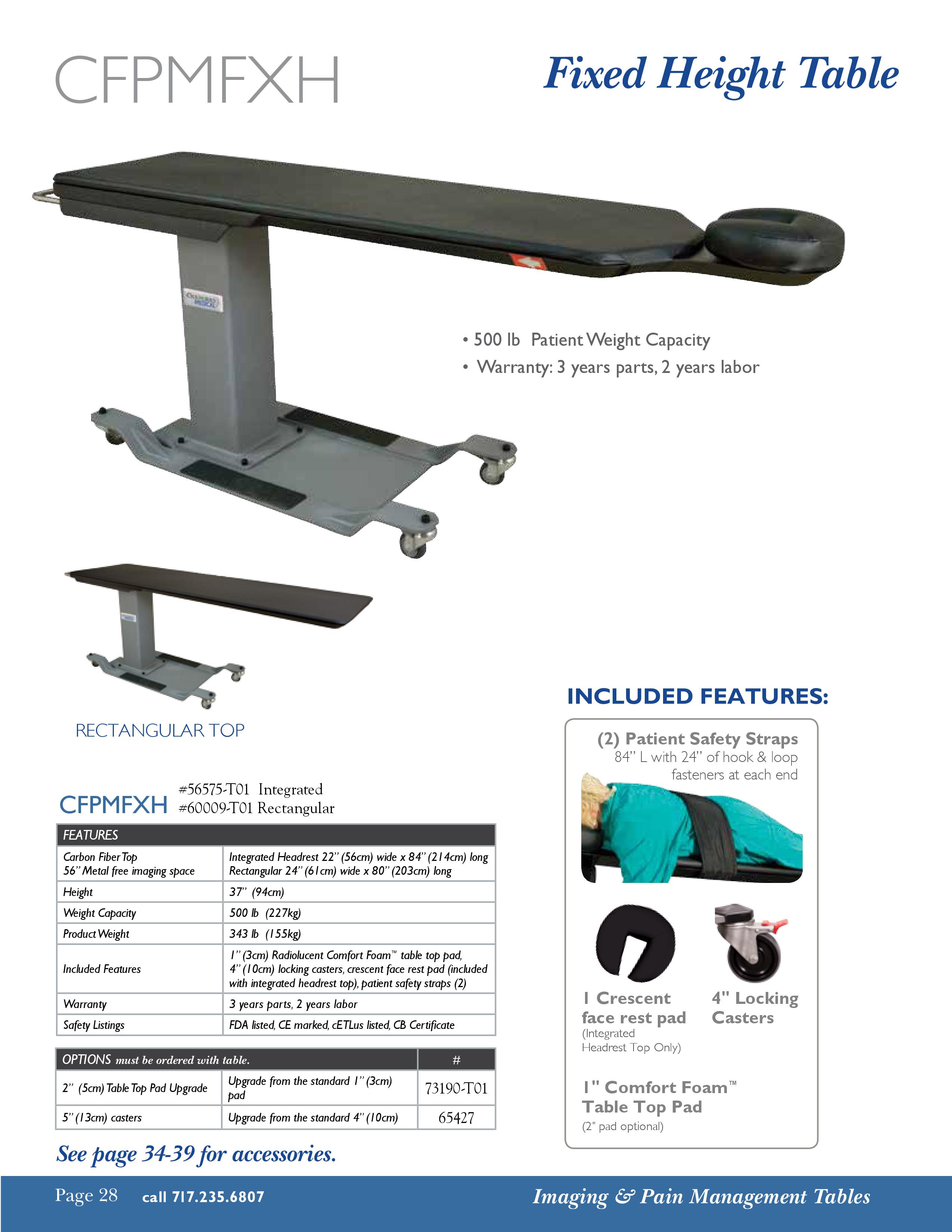 (discontinued) Oakworks CFPMFXH Imaging Table - Rectangular Top (60009-T01)